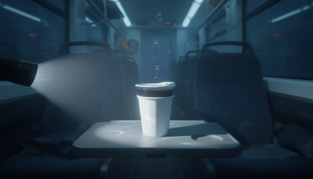 The cup shouldn’t have stayed upright, and the liquid shouldn’t have stayed inside it under the weight of the ocean. I drifted closer, my light trembling in my hand as I stared at the impossible object. It was a fresh cup of coffee, the steam seemingly trapped in a bubble against the lid.